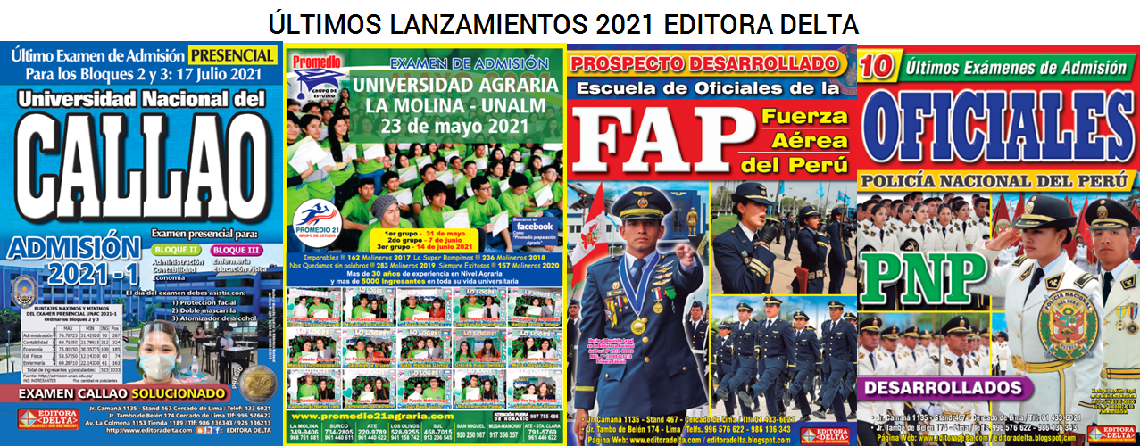 Desde 1983 EDITORA DELTA publica libros de recopilación de Examenes de Admisión de Universidades, Escuelas Policiales e Institutos del Perú.